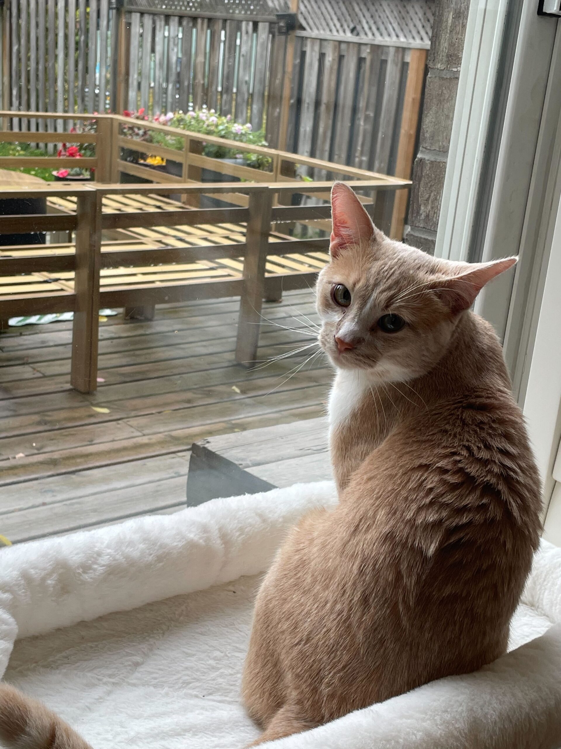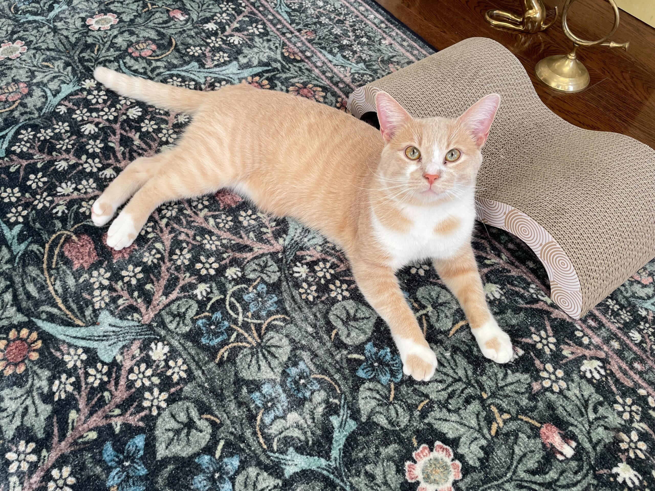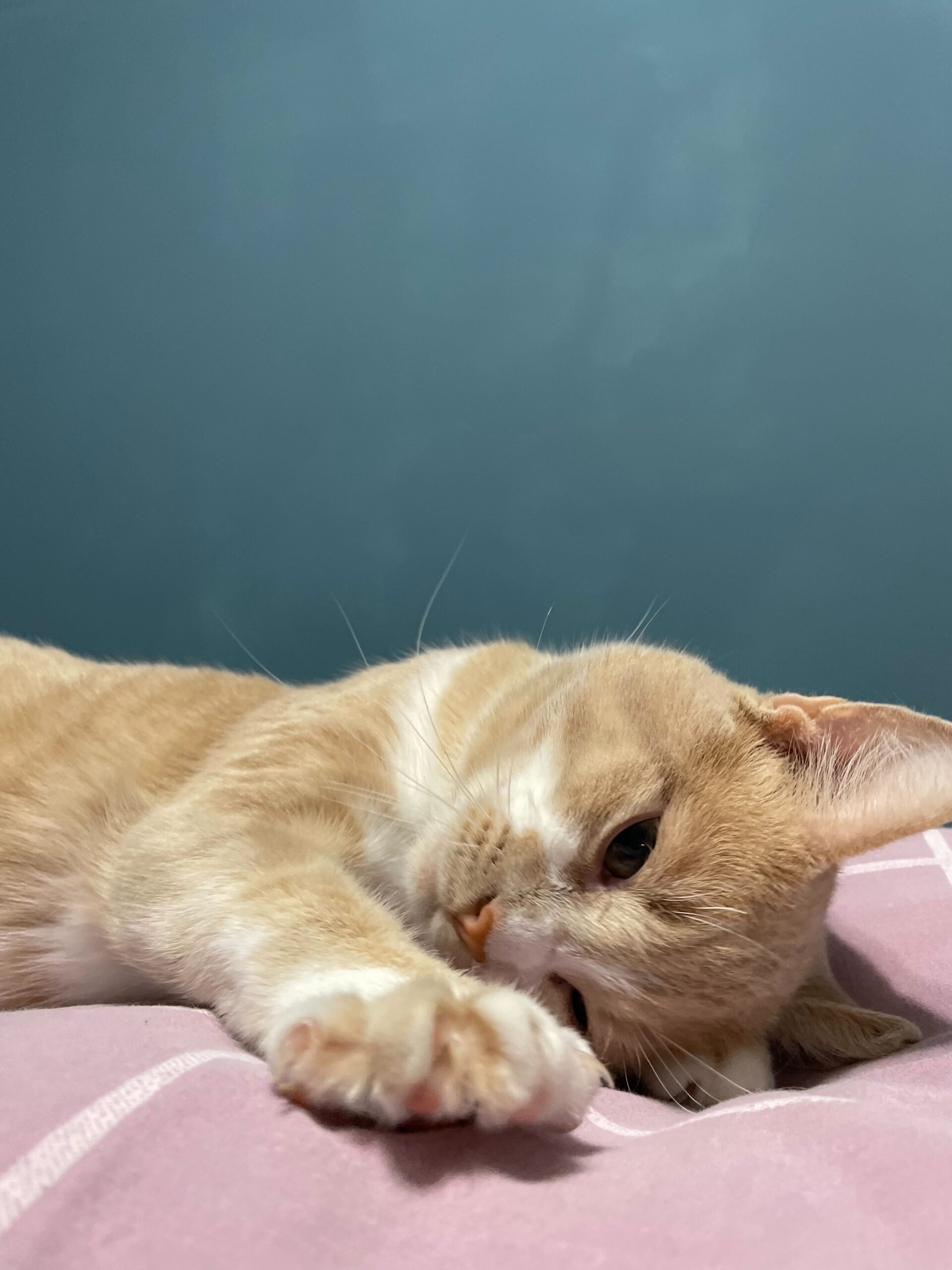 Aries enjoys all manners of scritches and petting and may even let you pick him up for a short cuddle. He loves to sleep with humans or other cats. Aries is also fond of getting brushed — he loves a good grooming session to keep his coat looking stellar! A cat of exquisite taste, Aries knows his favourite toys that get him extra excited to play; a wand or laser pointer will turn playtime into party time! Aries is a social young cat and needs to be adopted into a home with another young cat. He is very friendly with other cats and children, but has not been tested around dogs.