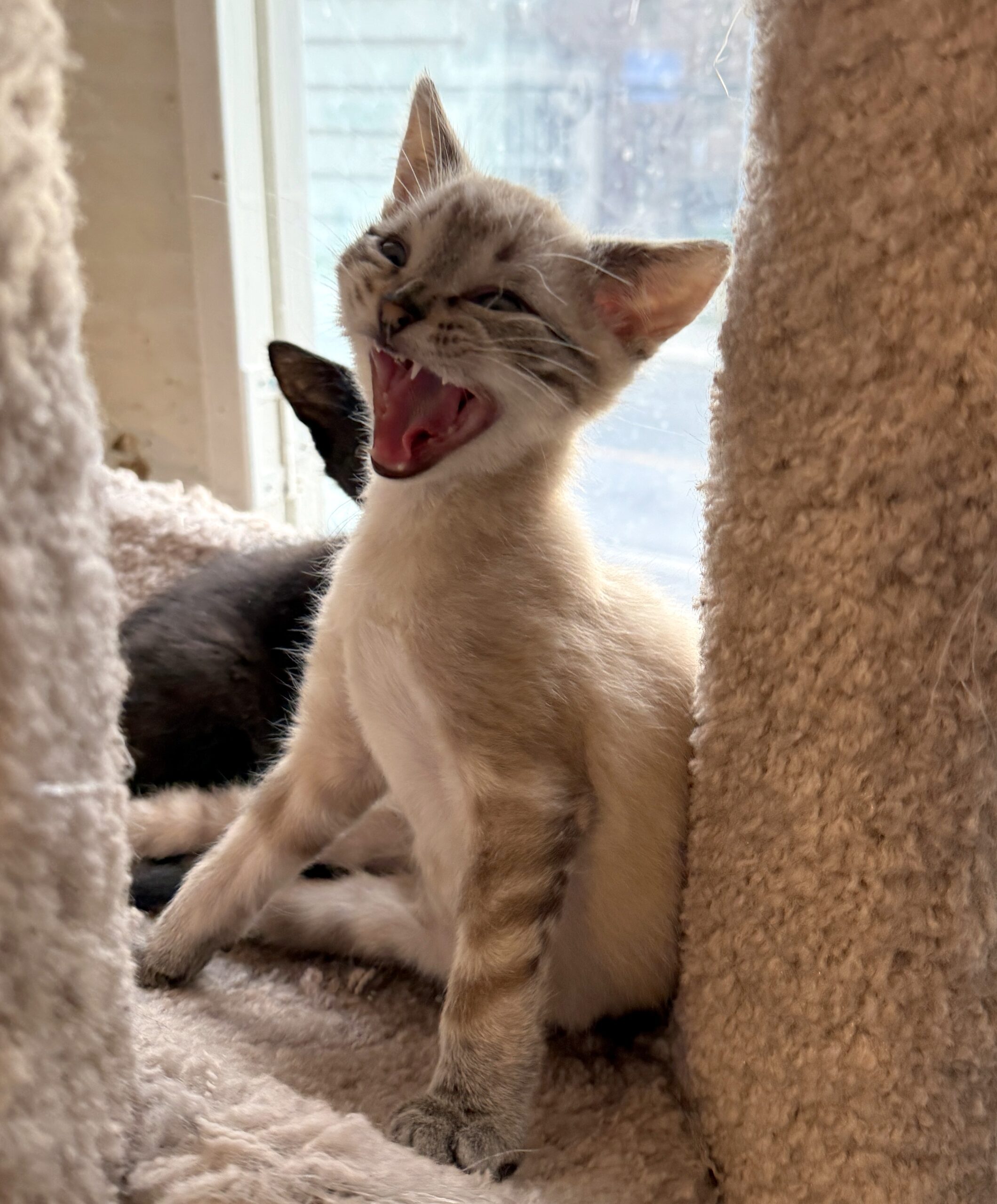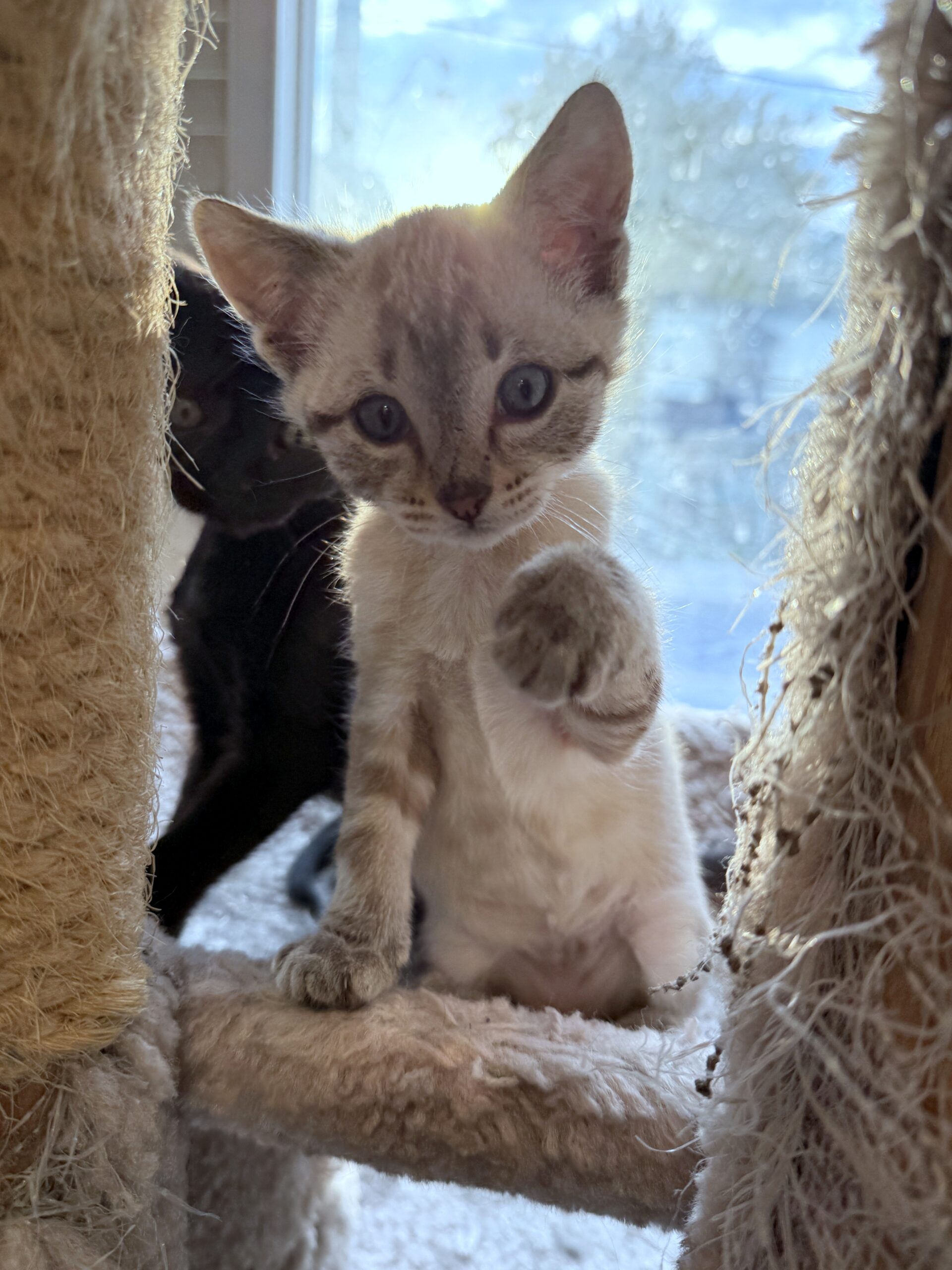 All kittens (Under the age of 1 year) must have another young cat (under the age of 5 years). No exceptions. Dogs and kids are not substitutes.