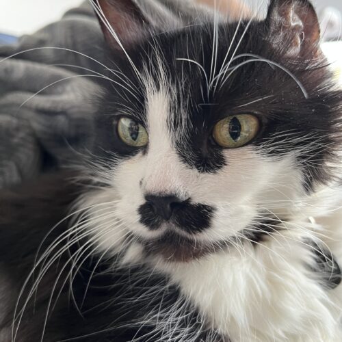 Felony would thrive in a loving home where she can cuddle to her heart’s content. If you’re looking for a quiet, loyal companion who will stick by your side and warm your heart (and pillow), please contact Team Cat Rescue today because Felony just may be your perfect match.