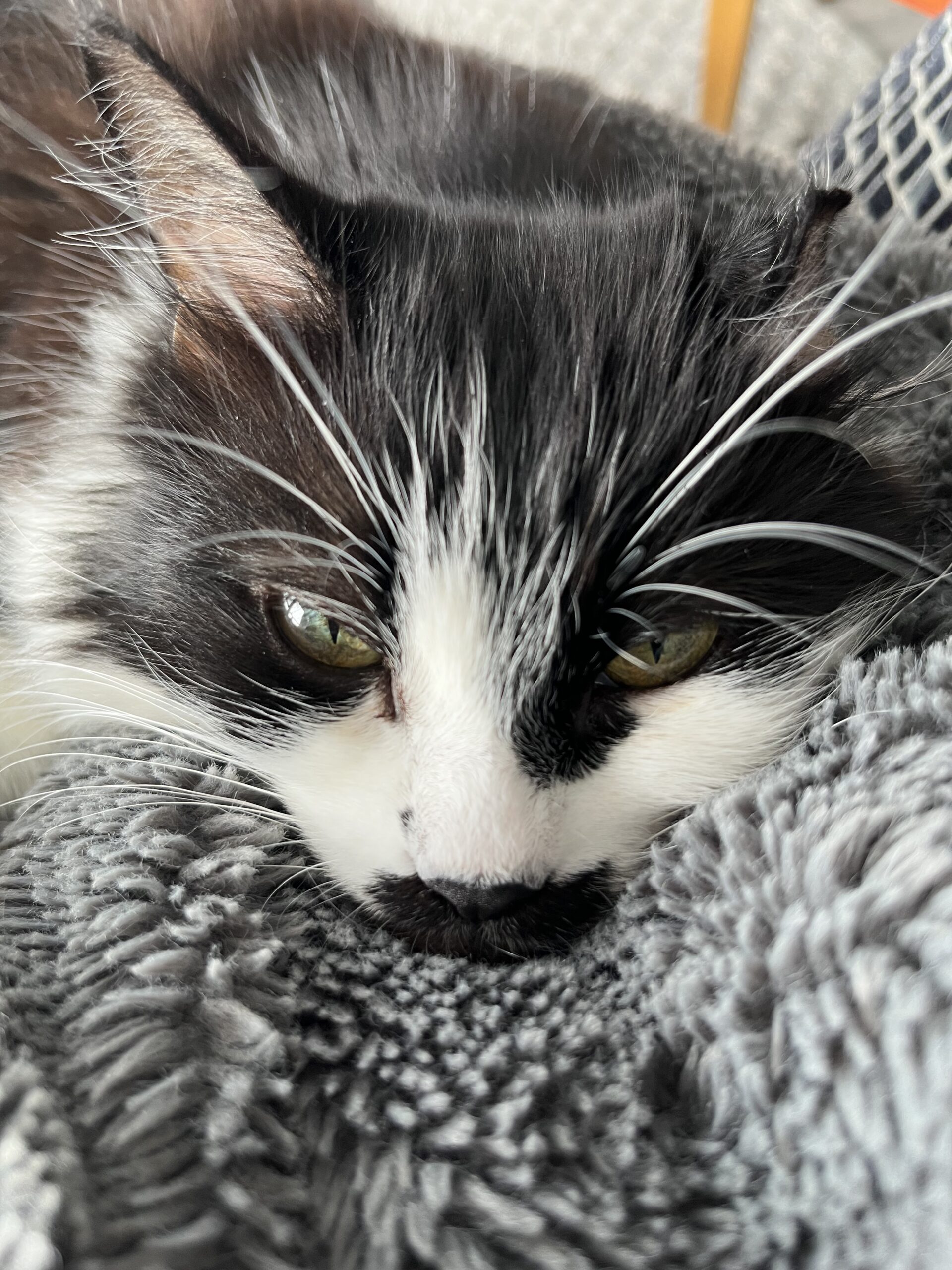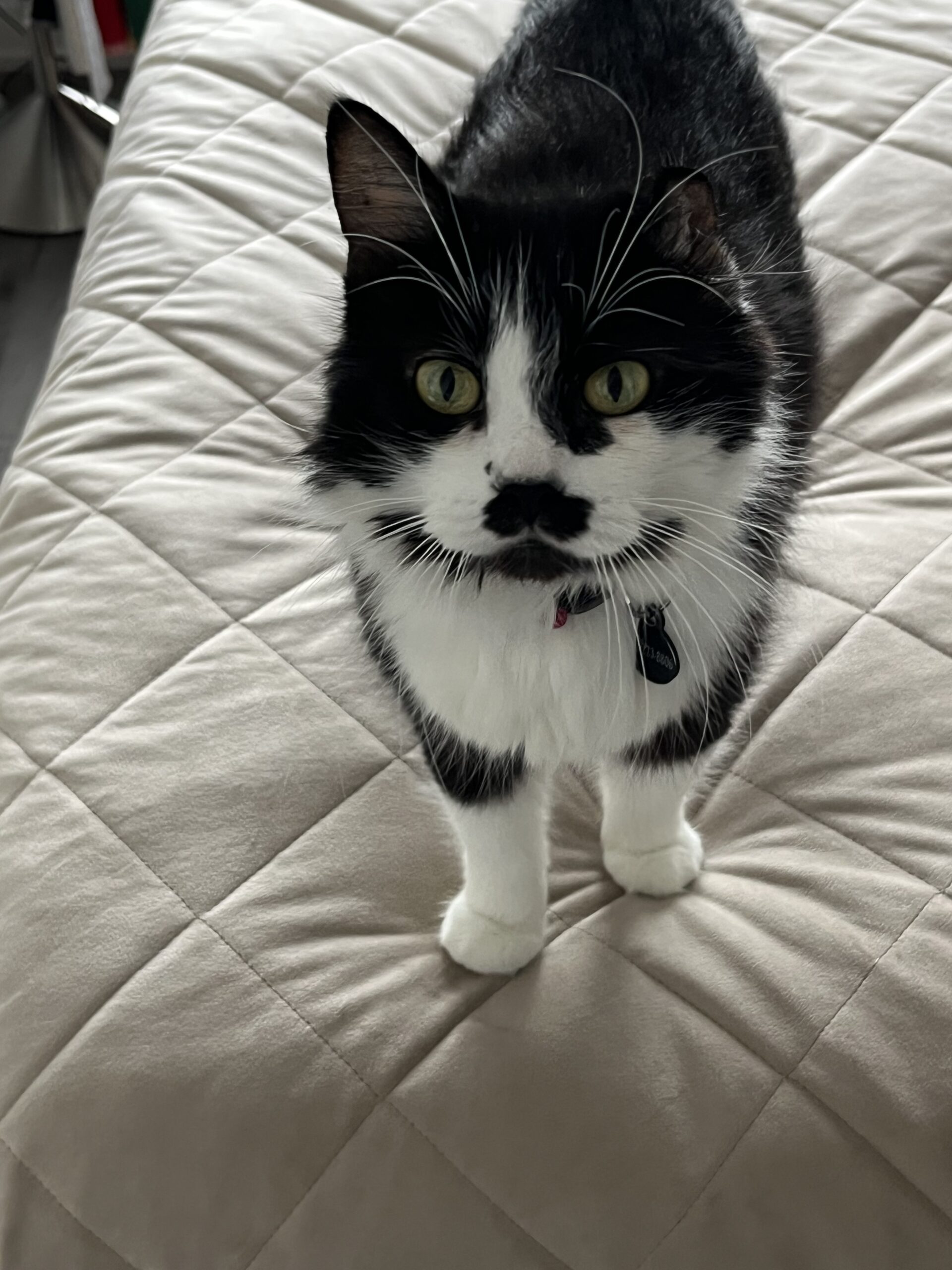 Meet Felony! This sweet and affectionate girl is a total lovebug who adores being around her person. She’s been described as an absolute doll by her foster, and it’s easy to see why. Felony is a loyal little shadow who loves lap time, snuggles in bed, and even sleeping cheek to cheek with her favourite human.