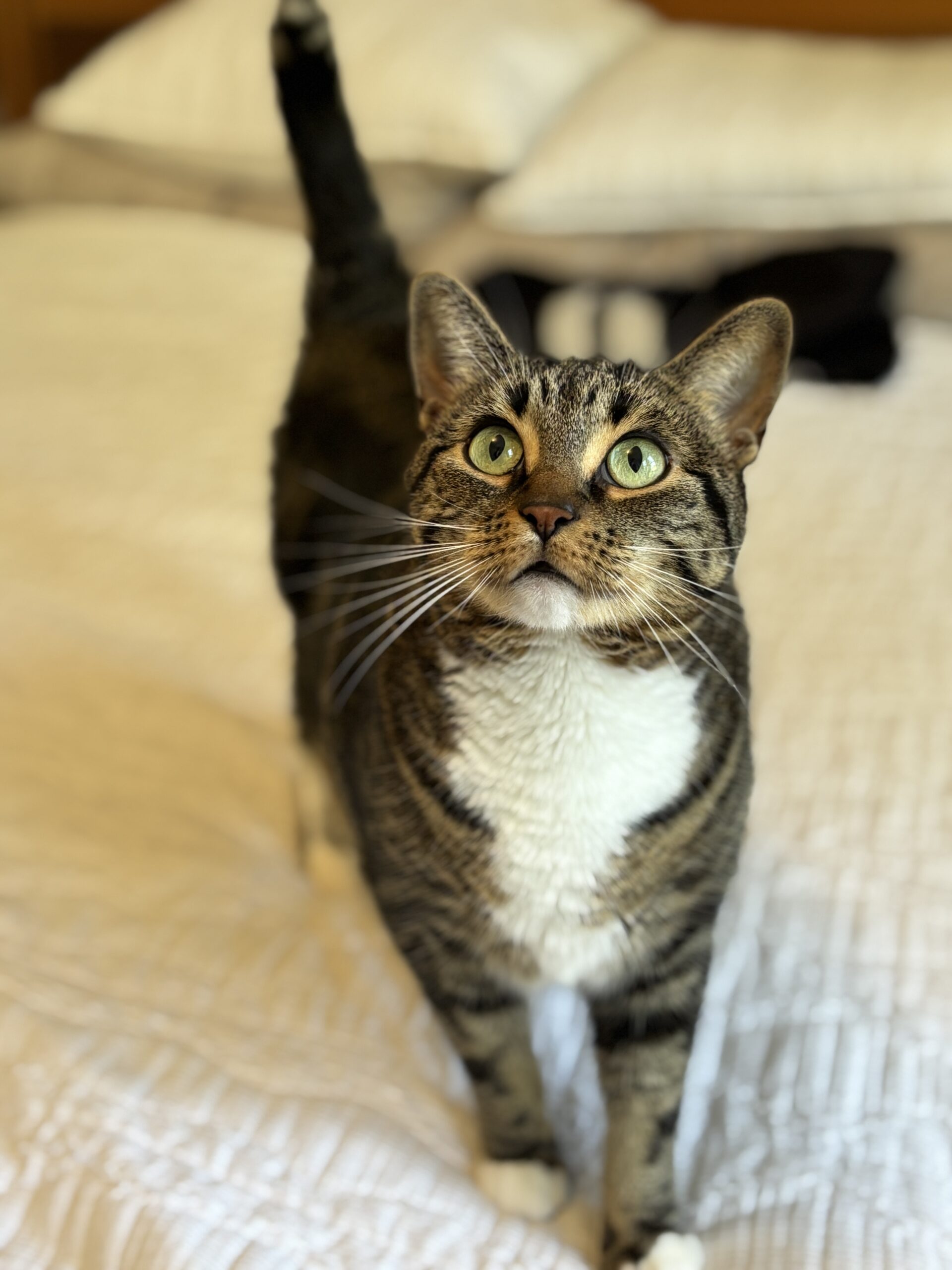 Hazelnut would do best in a quiet household with older kids, as she can be startled by loud noises. She requires a patient adopter who will give her time to overcome her initial bashfulness, and to blossom into the confident and friendly girl she’s proven to be! She is on a special urinary tract diet prescribed by the vet to maintain her best health. She loves to be petted and receive back scratches.
