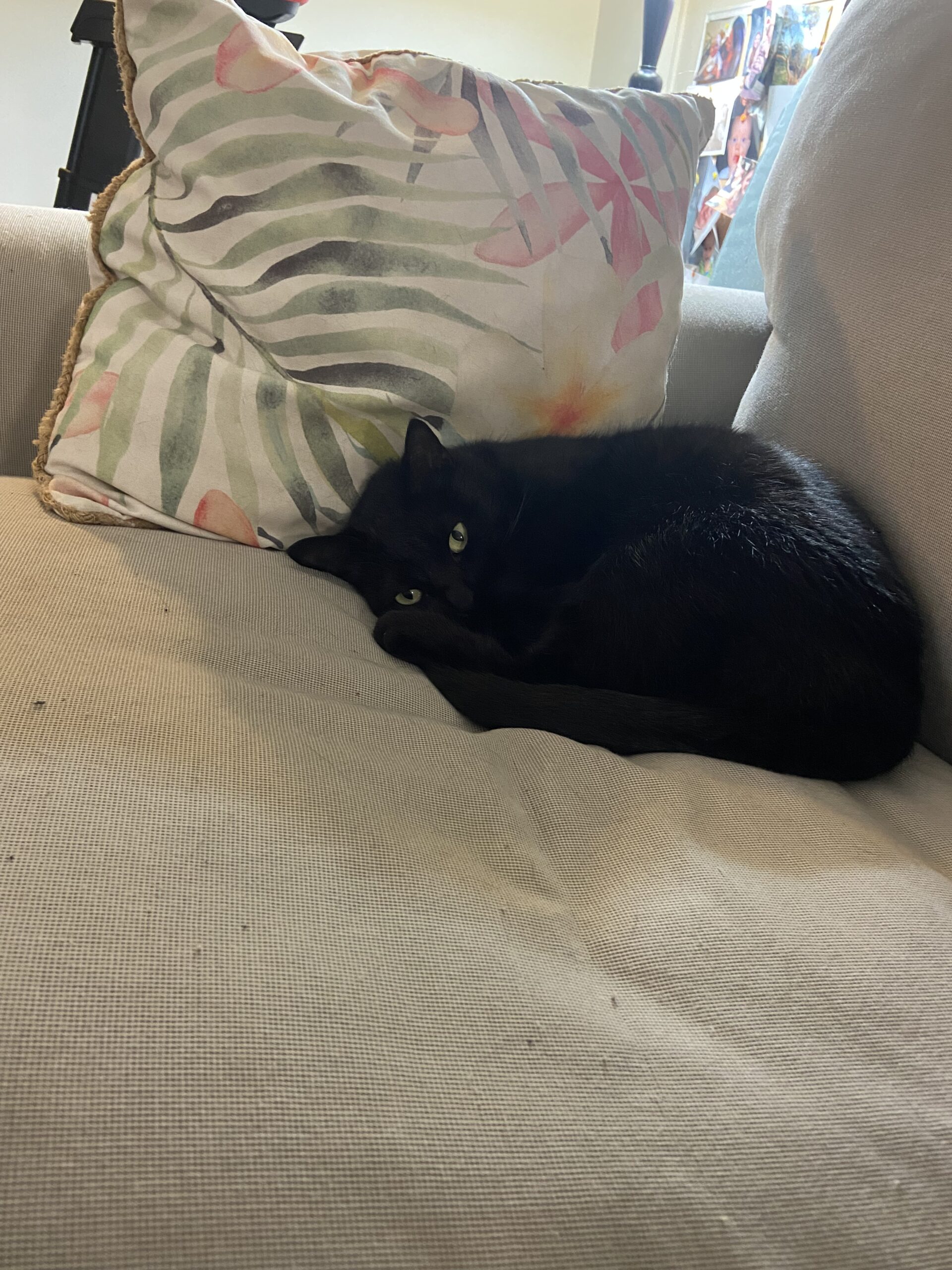 At first, Miley may keep her cards close to her fluffy chest, complete with dramatic hisses and even the occasional paw swipe, but don’t be fooled. This tiny queen isn’t mean; she’s just setting healthy boundaries and isn’t afraid to purr-sistently enforce them! Once Miley gets to know you, she’ll grace you with her softer side. While she’s not one for cuddles right off the bat, she does enjoy hanging out nearby, whether it’s a cozy night on the couch watching TV or curling up right next to your pillow like the little nighttime guardian she is. She prefers affection on her terms, but once you're in her VIP circle, expect purrs, slow blinks, and the occasional nuzzle. She’s playful too! Give her a string toy and she’ll be bopping around like she’s on stage at her own feline concert. Her sass? Legendary. Her loyalty, once earned? Unmatched.