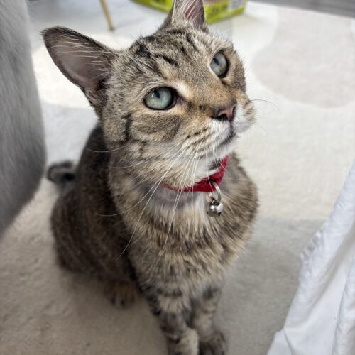 We’d like to introduce you to the wonderfully affectionate Sir Puffington! This sweet boy will make his presence known by purring allllll the time… he’ll even purr just because he’s in the same room as you. He simply loves being in the presence of his people. He is as curious as a kitten and will follow you everywhere. Sir Puffington loves to perch on his foster mom’s bed and watch her get ready in the morning. He also has a unique tail that only adds to his charm.