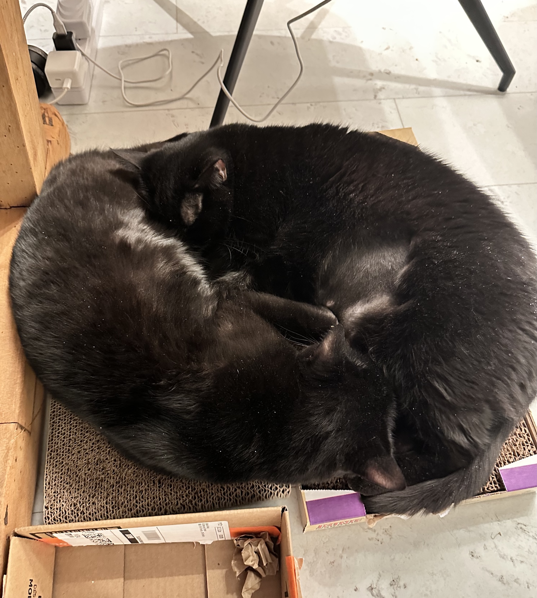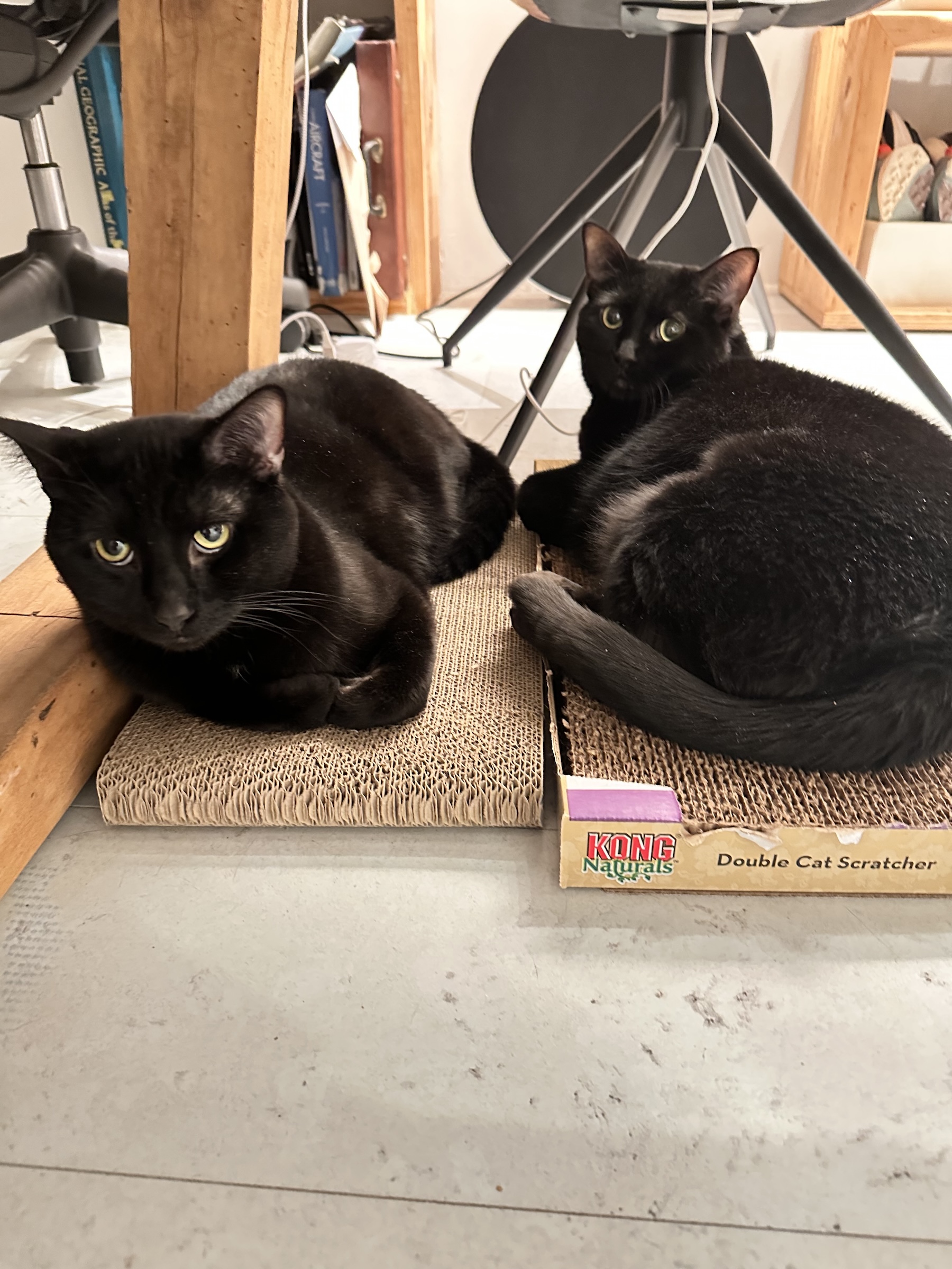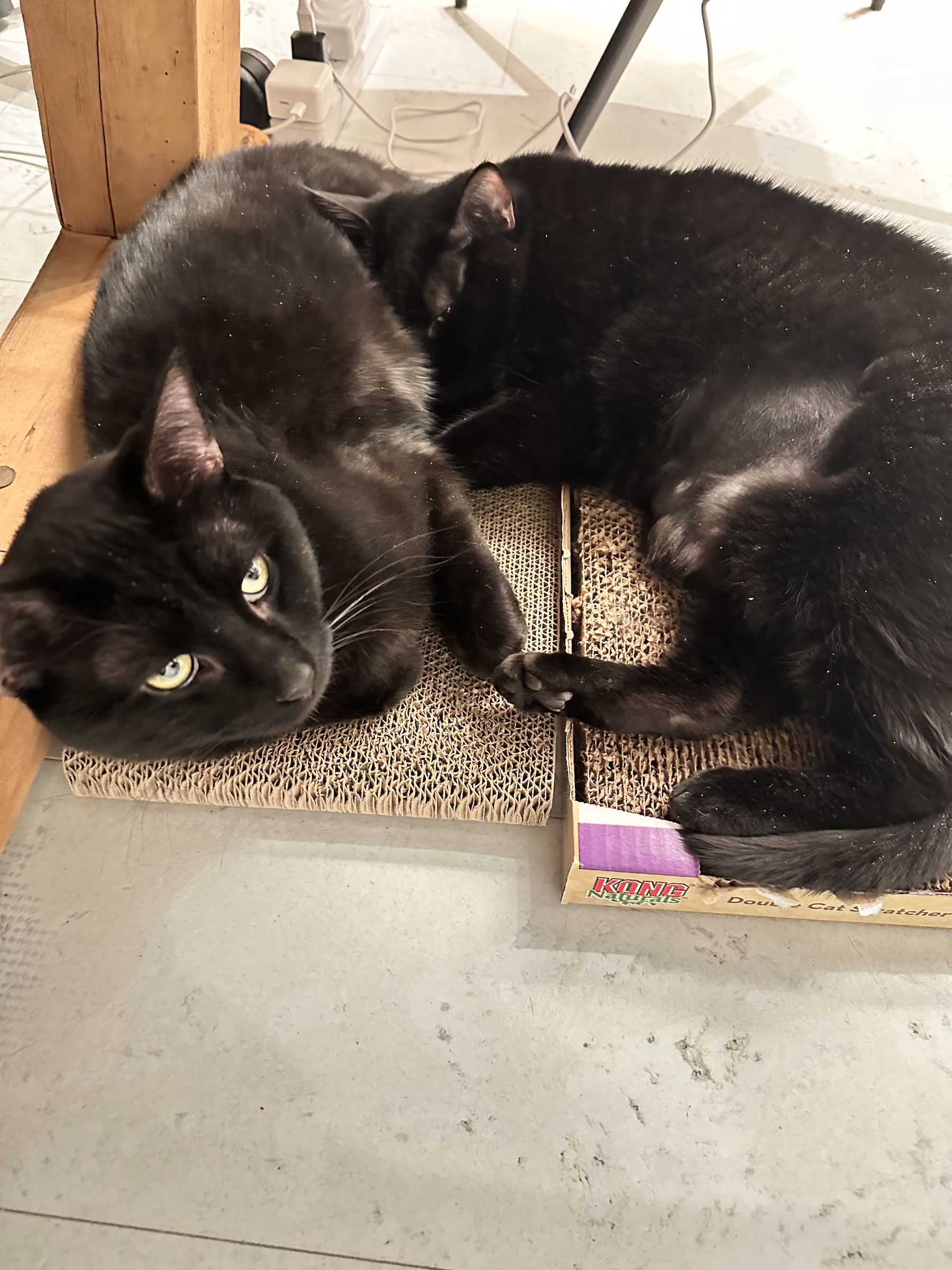 Meet Hi-Jinks and Tom Foolery! These two are a beautiful bonded pair who will surely melt your hearts with the love they have for one another. When they nap together they look like an adorable puddle of fuzzy black fur. They are also very chatty together which is a delight to watch. Wherever you find Jinks, you will surely find Tom nearby.