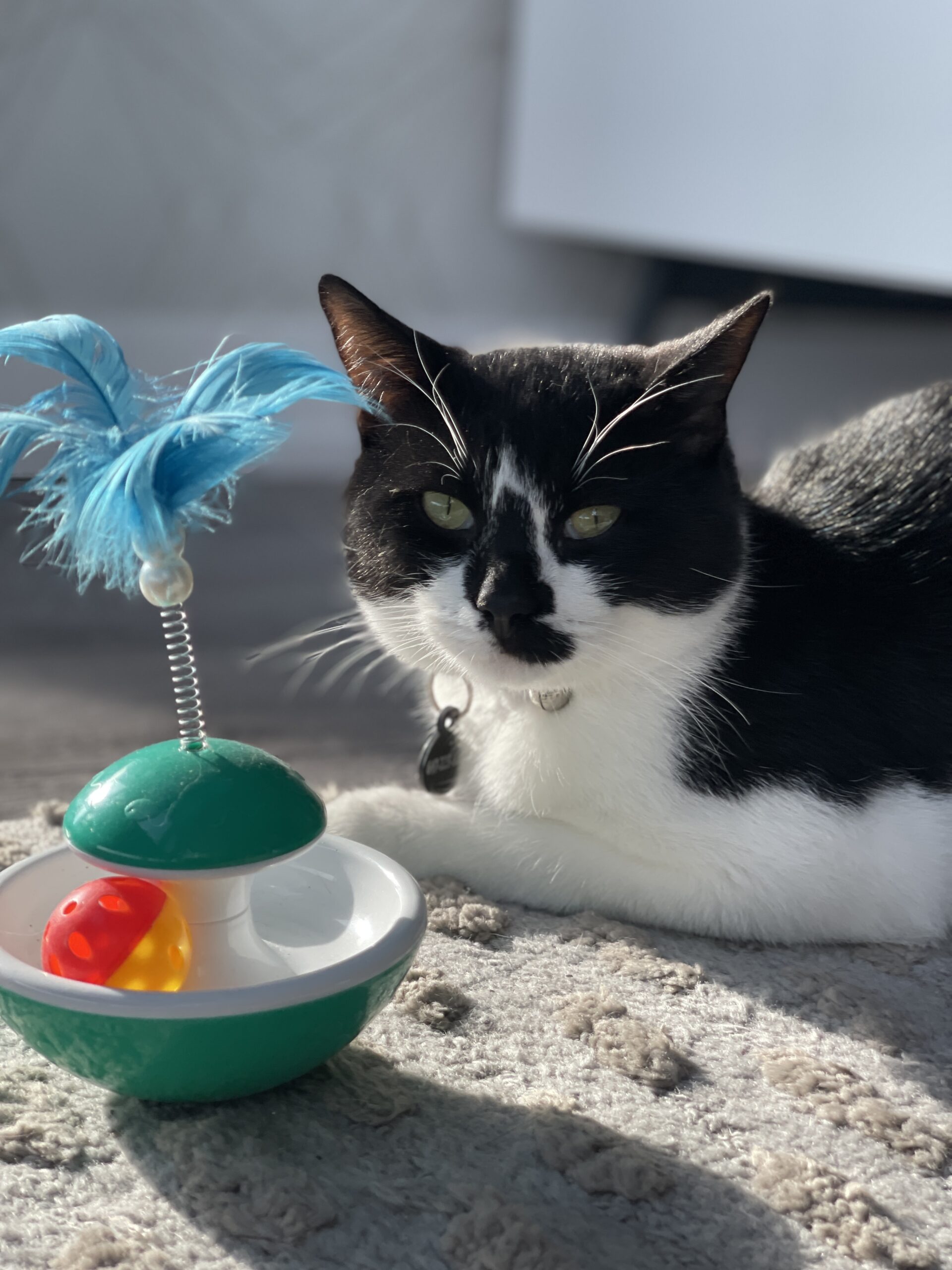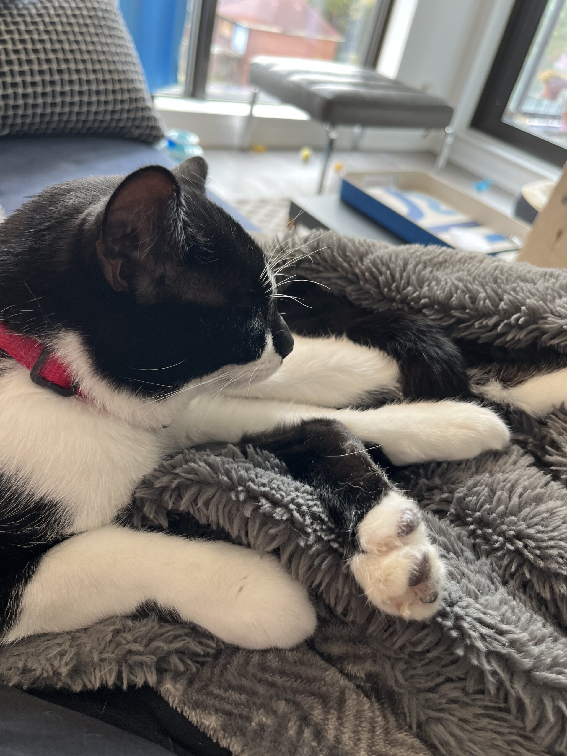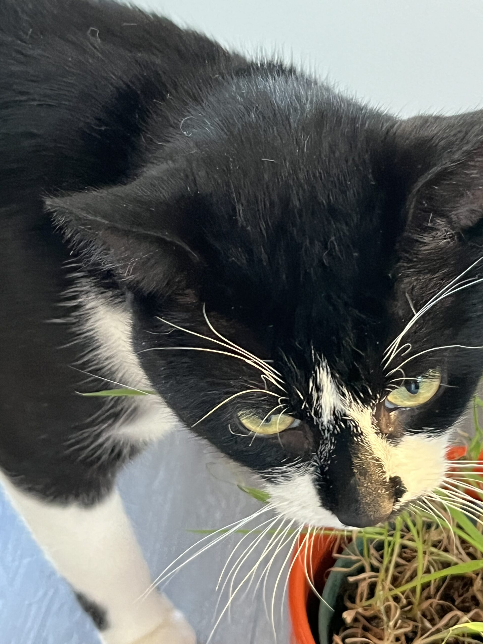 He has been recently diagnosed with FELV (Feline Leukemia). Feline leukemia definitely sounds scary. But while it’s not something to be taken lightly, it’s also not necessarily an immediate death sentence. Unlike human Leukemia, Feline leukemia is a virus. It can only be transmitted to other cats so humans, dogs and other species cannot get it. We recommend FELV cats be single cats or with another FELV cat. The prognosis differs for each infected cat. Some cats pass away in a few years while other live a good long life.